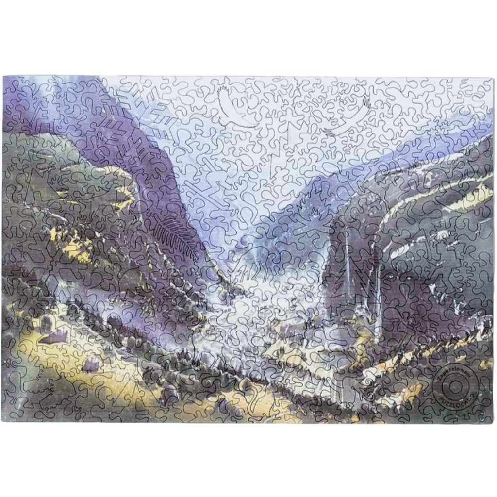 Drewniane puzzle "Dolina Wodospadów" od Avocado: Zanurz się w alpejskim krajobrazie!