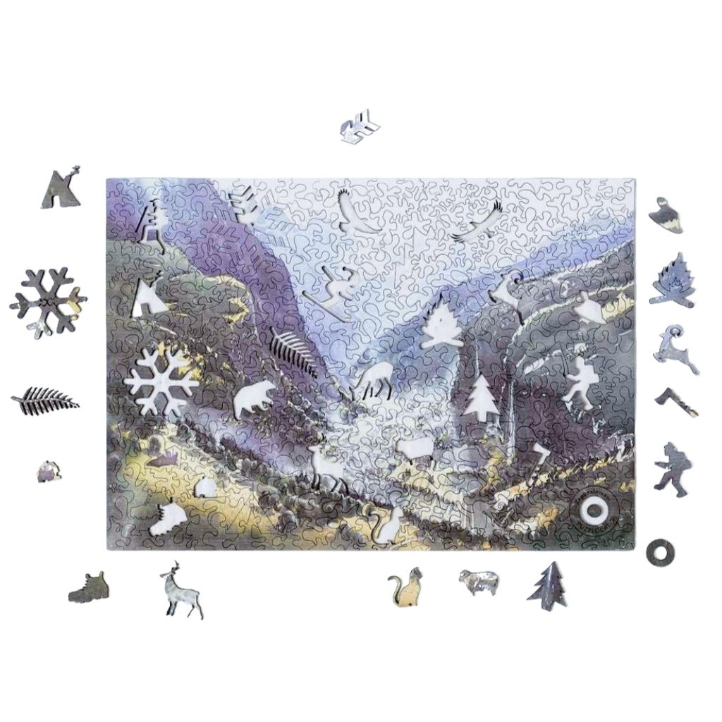 Przenieś się w magiczny świat Tyrolu z wyjątkowymi drewnianymi puzzlami "Dolina Wodospadów". Te unikalne puzzle to nie tylko świetna zabawa, ale także podróż w górski krajobraz pełen wodospadów, alpejskich szczytów i urokliwych owieczek. Idealne na leniwe popołudnie przy kominku lub kreatywny czas z rodziną.
